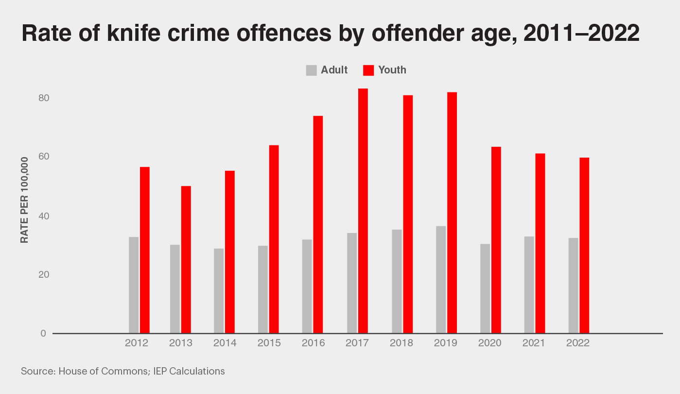 Although both rates are lower than their peak in the middle of the decade, it is important to note that these are custodial rates. This implies that there could be many more offenders who were not detained or whose offenses were not reported. With nearly half of young people expressing concern about knife crime in their local area, and both the Conservative and Labour parties pledging to address violent crime in their 2024 election campaigns, it is evident that knife crime is a major issue impacting safety and security in the UK.