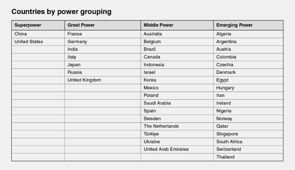While the UAE, Indonesia and Türkiye exemplify rising middle powers, India represents an overlapping case: a nation whose economic, demographic and diplomatic influence continues to expand among the world’s great powers. India is unique among major states in its growth trajectory, distinguishing it from other great powers whose influence has plateaued. India is the only great power whose overall influence continues to expand, at a time when the influence of all other major powers is stagnating or declining.